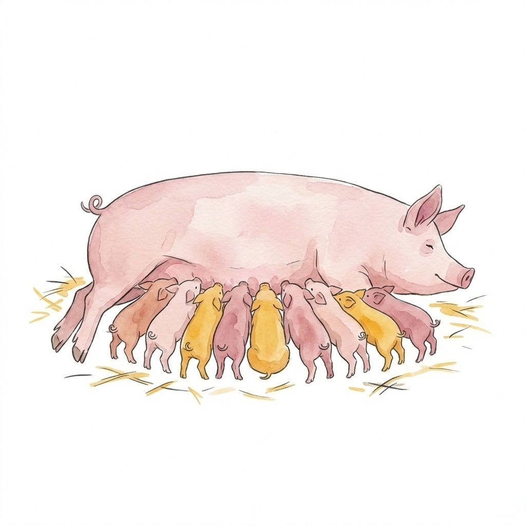 製品がもたらす価値の高さは瞬く間に知られ、今では全国各地の養豚農家とお取引を確立しています。育種改良を重ねた種豚は高い繁殖性や強健性を兼ね備え、さらには最新のユーザデータをもとに年々進化を遂げています。元来、一般的な平均値では12~14個ほどだった乳頭の数も、16~18個までに増加。優れた産子数と哺育能力を発揮し、生産コスト低減や豚肉の品質向上に寄与しています。