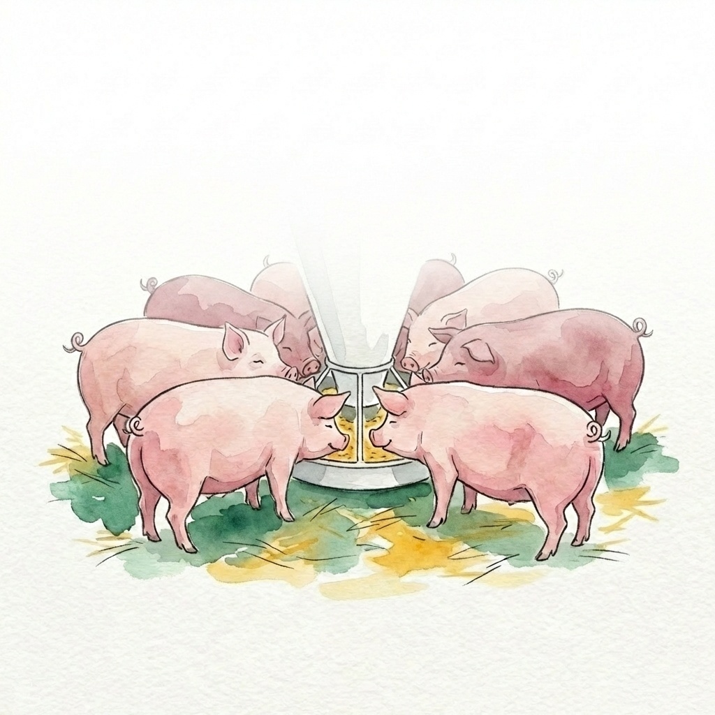 食品メーカーの製造過程で発生したおからやパンなどの食品残さを、豚の飼料として利用するエコフィード(飼料化)に取り組み、年間にして1万2000t以上に及ぶ食品ロスの削減に貢献しています。自社に「リキッドフィーディングシステム(自動液餌搬送装置)」を導入し、原料の粉砕、液状化、日令にあわせた栄養設計、給餌までを一貫して対応しています。