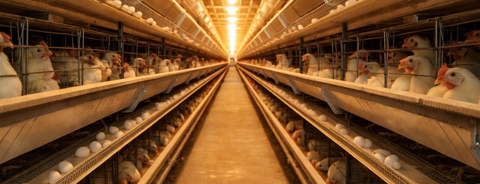 農場は、孵化翌日~生後40日のヒナがあつまる「育雛農場」、生後40日~生後120日のヒナを育てる「育成農場」、生後120日~生後720日の雌鶏があつまる「成鶏農場」の3つに分かれています。いずれの鶏舎も、コンピュータ制御により、換気、温度管理、照明調整、給餌、除糞まで、24時間自動で管理されています。設備の維持管理を行い、鶏たちにとって最適な環境を整えることが、農場スタッフの主な役割です。