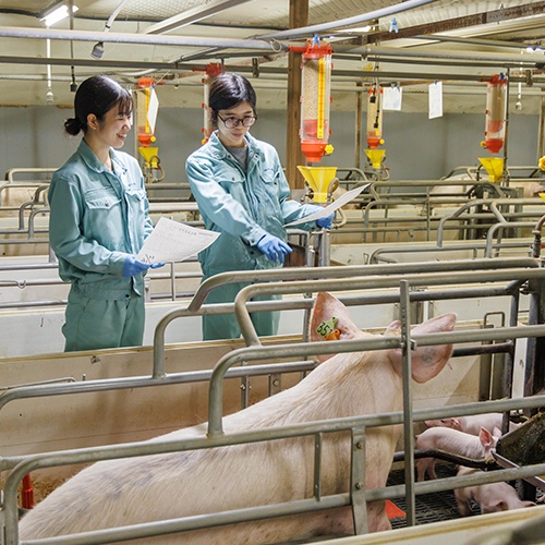 大学では昆虫を研究していました。畜産とは縁遠い世界に思われるかもしれませんが、根っこは同じで、とにかく生きものが好きなんです。だから、就職活動でも畜産関係の仕事で探していました。いくつかの会社で選考を受けていた中で、クレストグループに決めた一番の理由は「人」でした。会社の規模や福利厚生も、もちろん魅力的でしたが、面接や懇親会などで出会う人がみんな感じがよくて、ここなら安心して働けると思ったんです。配属先を選ぶとき、養鶏か養豚かと聞かれて「豚って可愛い」という理由で養豚を選びました。単純ですよね。でも7年経った今でもその直感は正しかったと思っています。
